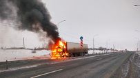 Кабина фуры полностью сгорела на трассе под Оренбургом