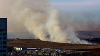 Полыхающую степь в районе Загородного шоссе тушат в Оренбурге