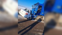 Пьяный таксист перепутал полосы движения и влетел в фуру на трассе в Оренбуржье